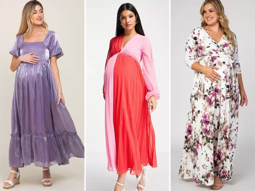 Choosing garments in natural fabrics like linen and thin cotton will keep you cool and comfortable. This is true for any and all maternity baby shower dresses you put on to accommodate your changing figure.